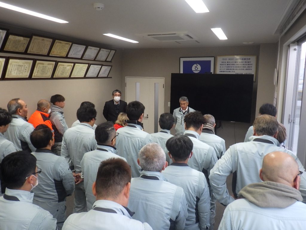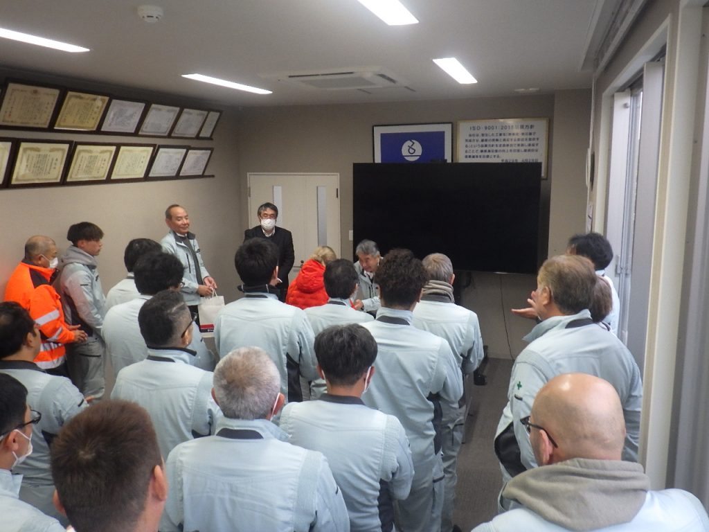 本社会議室での仕事始めの挨拶・社長訓示の様子です。 今年も無事故無災害を目標に、気を引き締めて業務にあたります。
